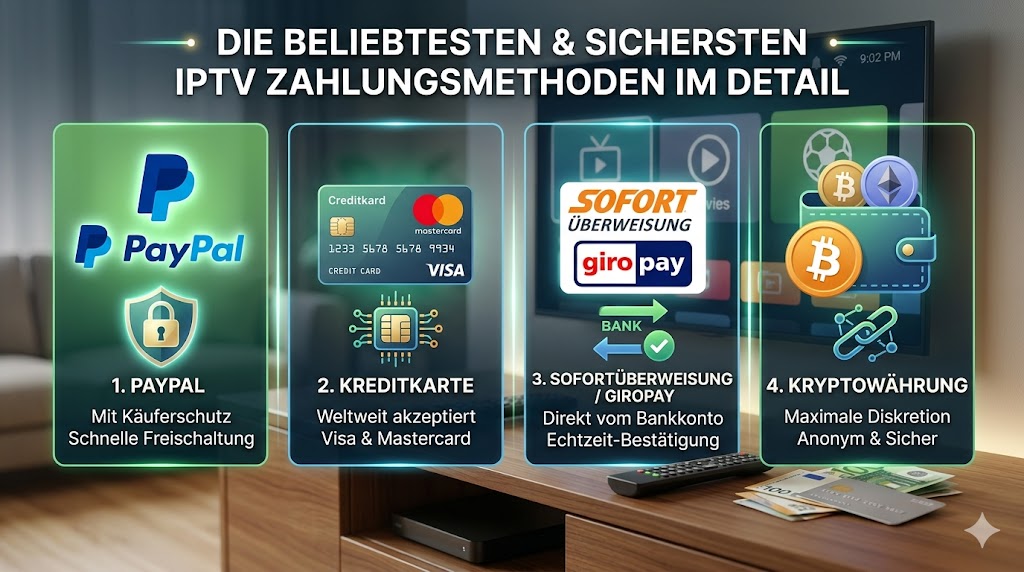 Die beliebtesten und sichersten IPTV Abo Zahlungsmethoden im Detail